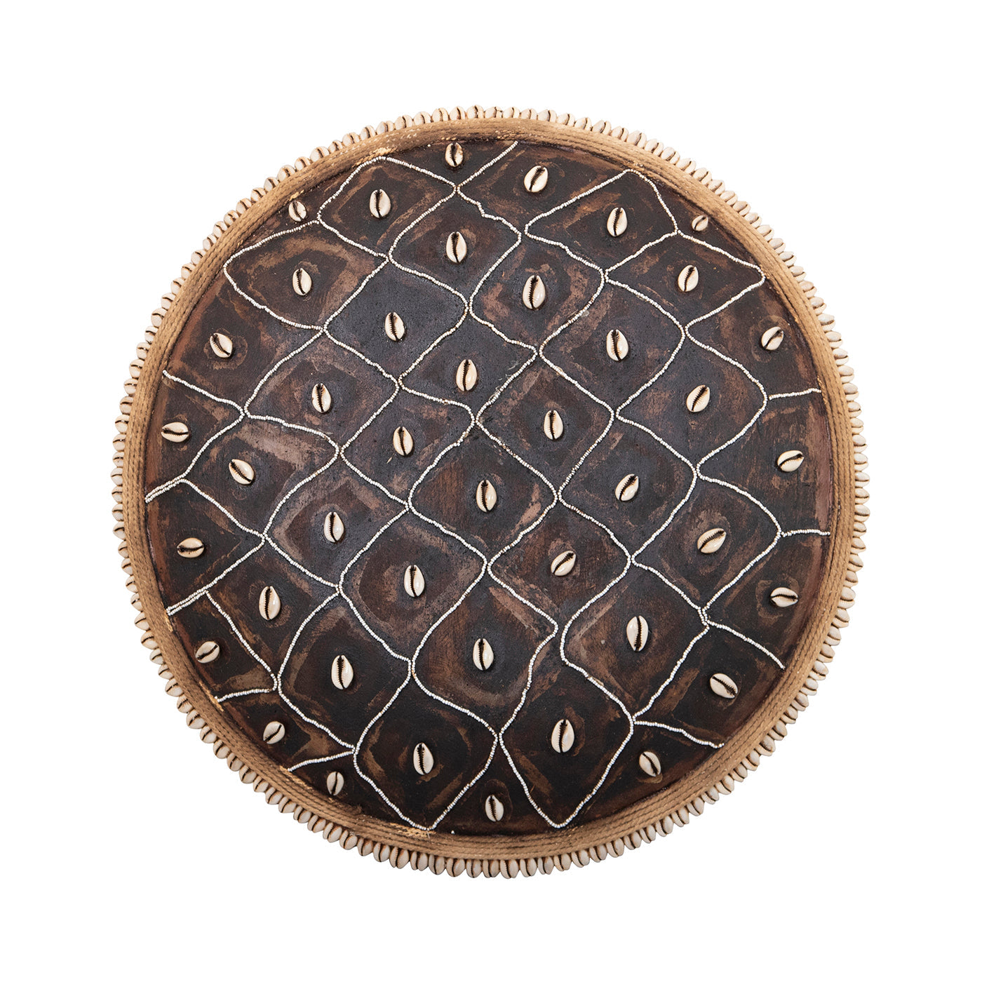 Փայտե բնական Կամերունի վահան՝ Կաուրի խեցիներով | Ադամանդե ուլունքներով զարդարված