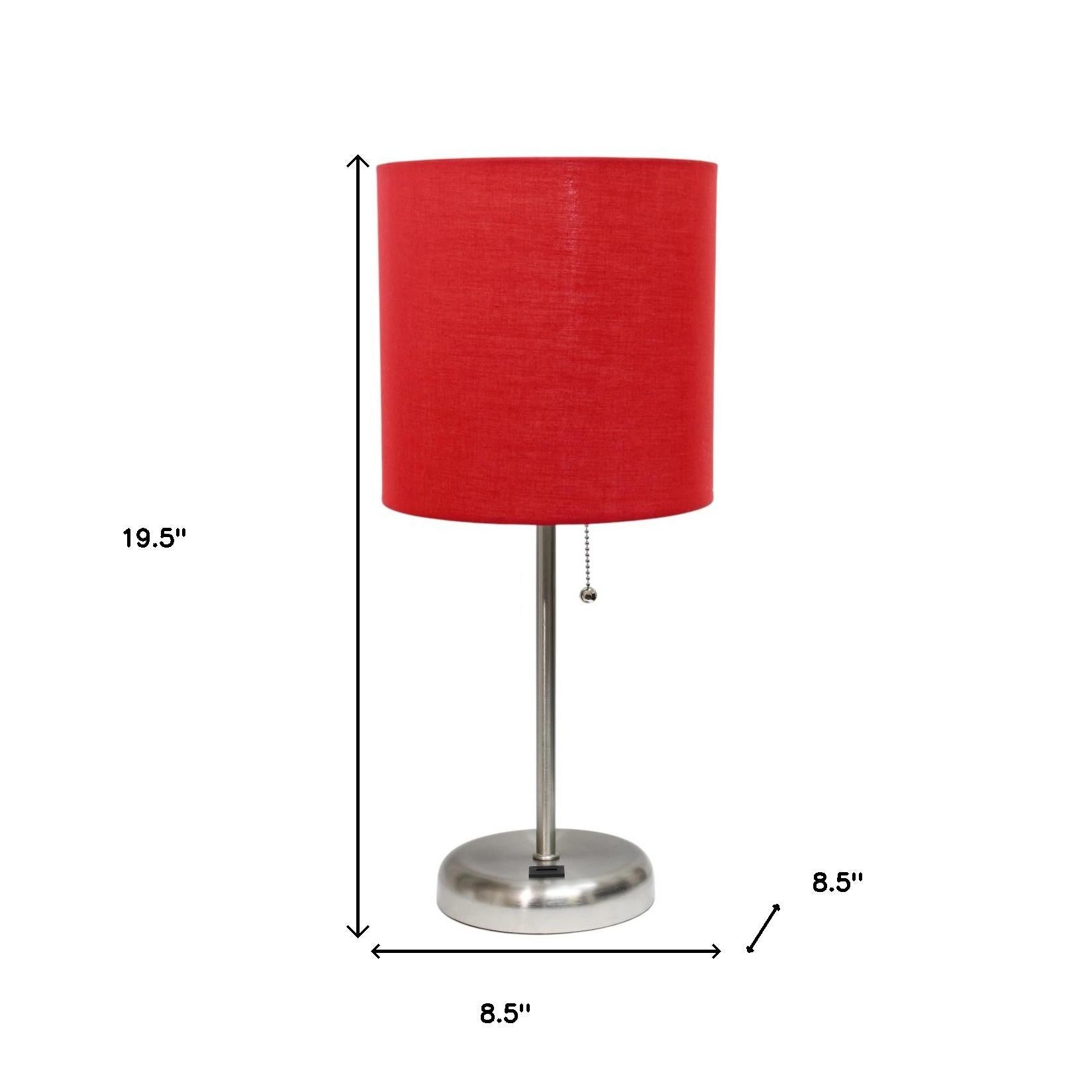 Add a bright anchor to your room with this 20-inch silver metal usb table lamp led with red drum shade. The base of this lamp is made of silver metal. The red shade has a drum shape and is made from fabric. This standard table lamp is designed to provide general lighting to the area. Use this lamp anywhere and elevate the look of the whole space. Bring some lite and good vibes into your space with this updated and stylishly designed lamp. 19.50-inch h x 8.50-inch w x 8.50-inch d. Dimensions: 19.5(H) x 8.5(W) x 8.5(D)