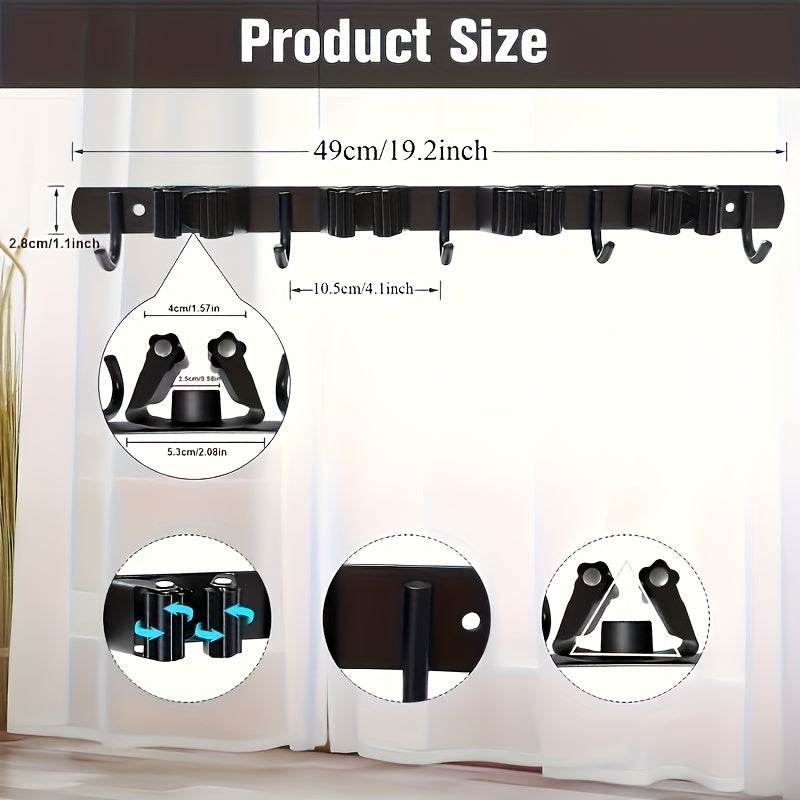 Maximize your storage with this heavy-duty stainless steel broom and mop rack, designed for home, kitchen, garden, and garage use.