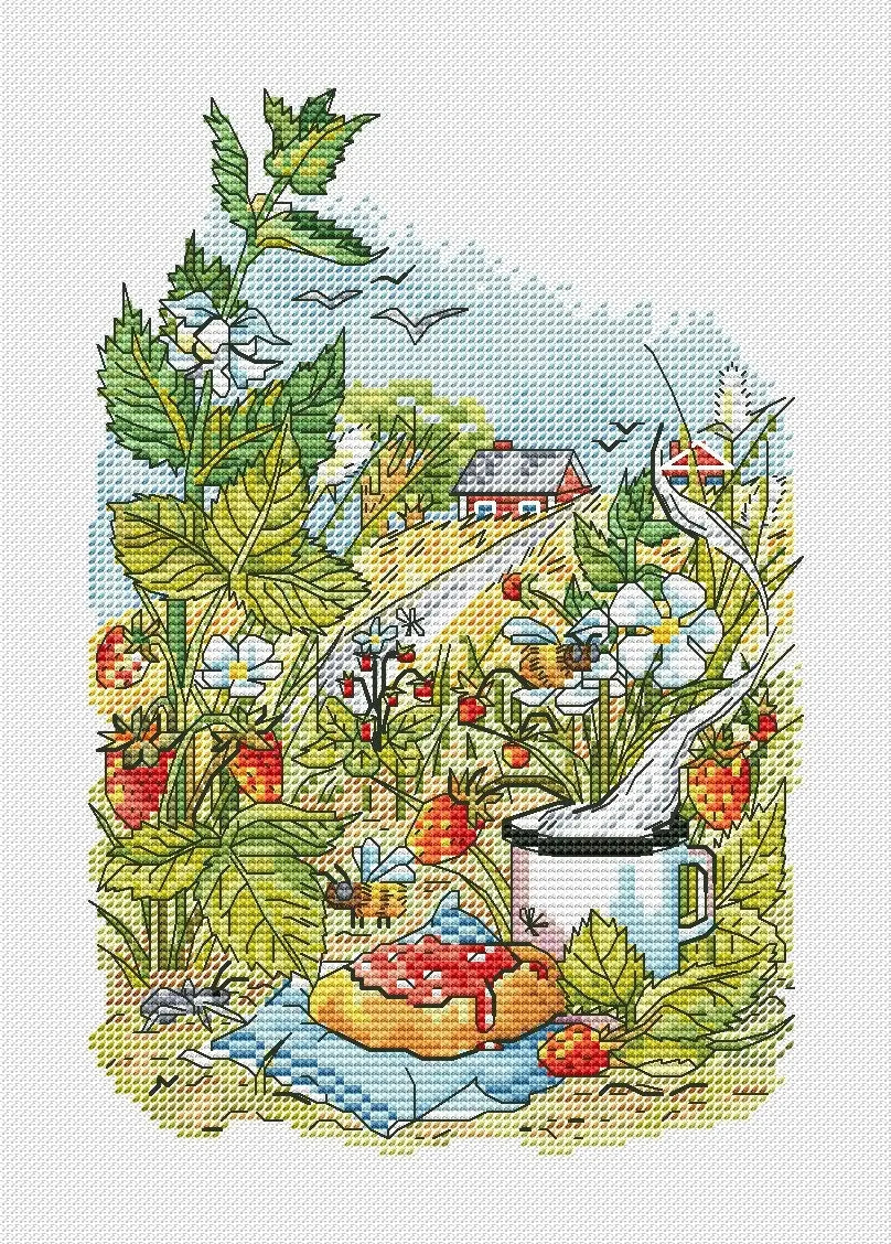 Taiga herbs. Strawberries - PDF Cross Stitch Pattern