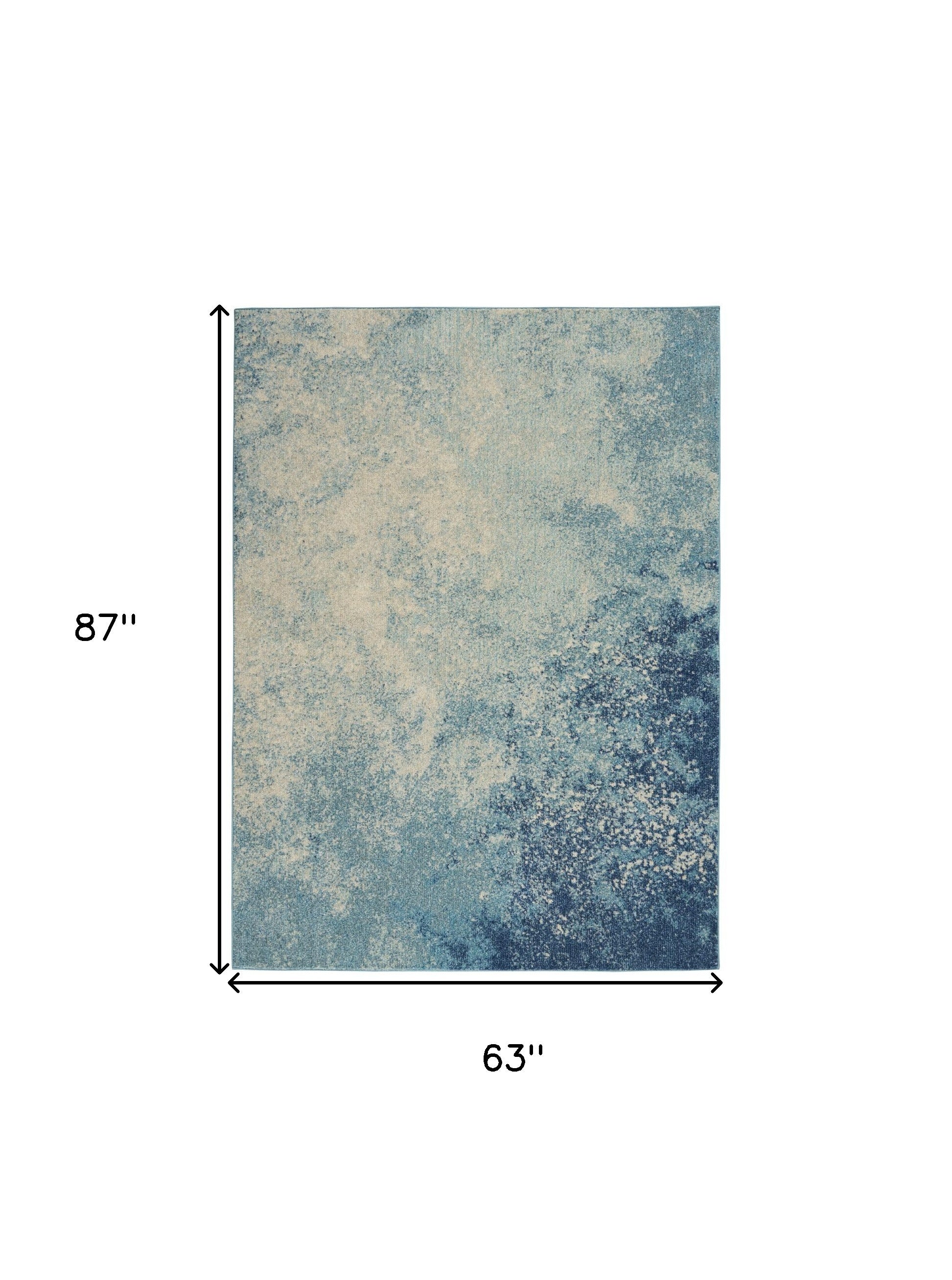 Add some artistry to your room with this 5-foot x 7-foot blue and ivory abstract area rug. Built to last, this rug crafted from polypropylene fibers is known for its durability and long lasting appeal. Rugs are a great way to showcase your style, hide imperfections, warm your home and reduce noise. This larger sized, transitional styled rug is ready to create a focal point or statement piece in your room. 63-inch h x 87-inch w x 0.5-inch d. Dimensions: 63(H) x 87(W) x 0.5(D)
