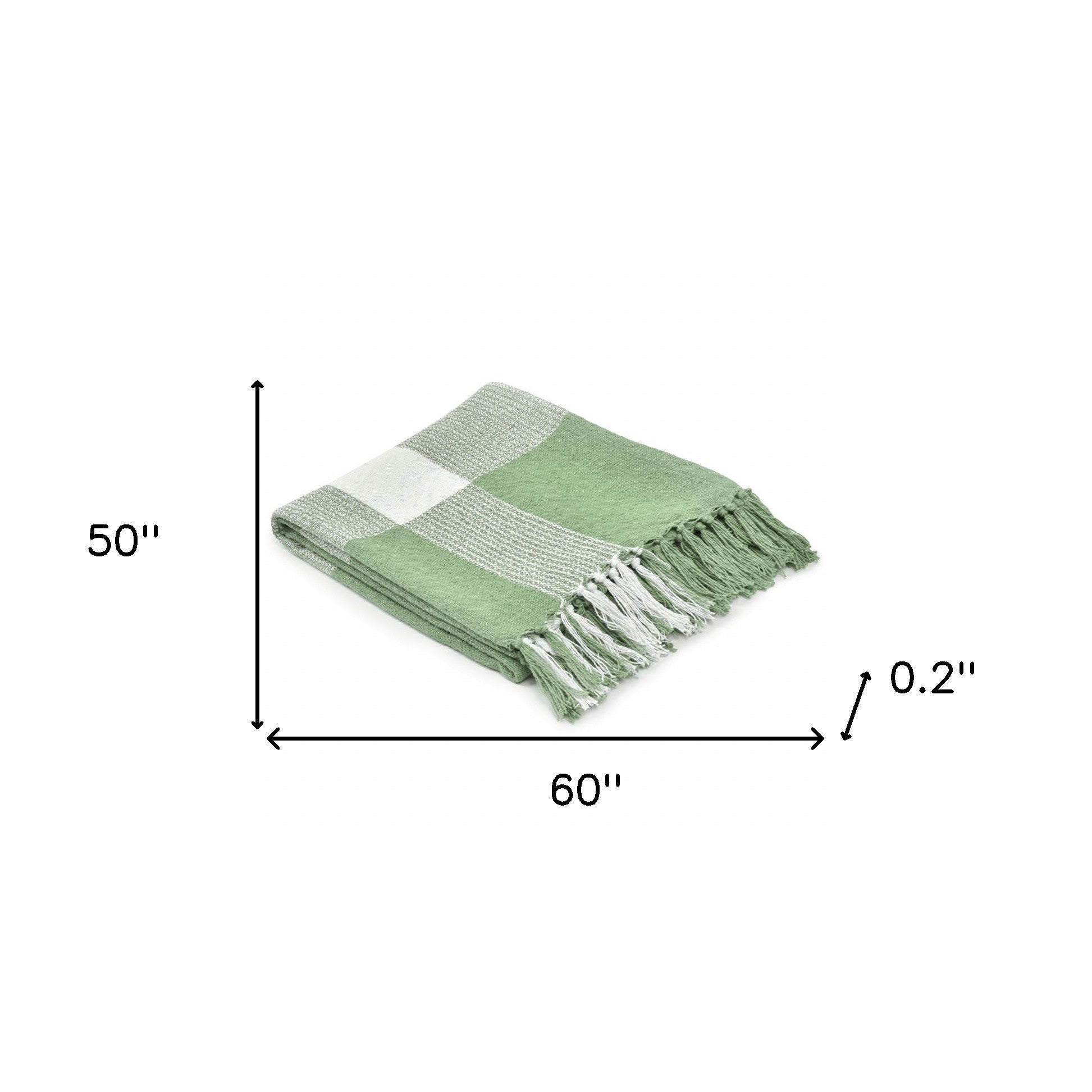 This welcoming green woven cotton checkered throw blanket is a must-have for every sofa, chaise, and bed. Features a woven checkered design that offers sumptuous softness and texture that you'll cherish for years to come. Made from cotton this blanket will make a great addition to any room it's added to. Add extra texture to your decor and turn your room into an inviting space. This cozy throw blanket makes the perfect add-on to movie nights and lazy afternoons. 0.2" H x 50" W x 60" D Dimensions: 50(H) x 60(W) x 0.2(D)