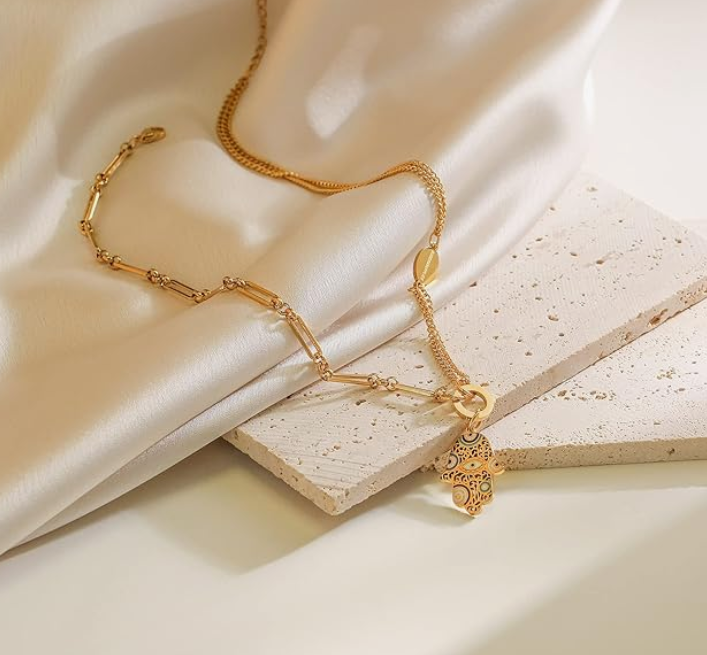 - Pendant Design: Artistic Hamsa with colorful enamel details