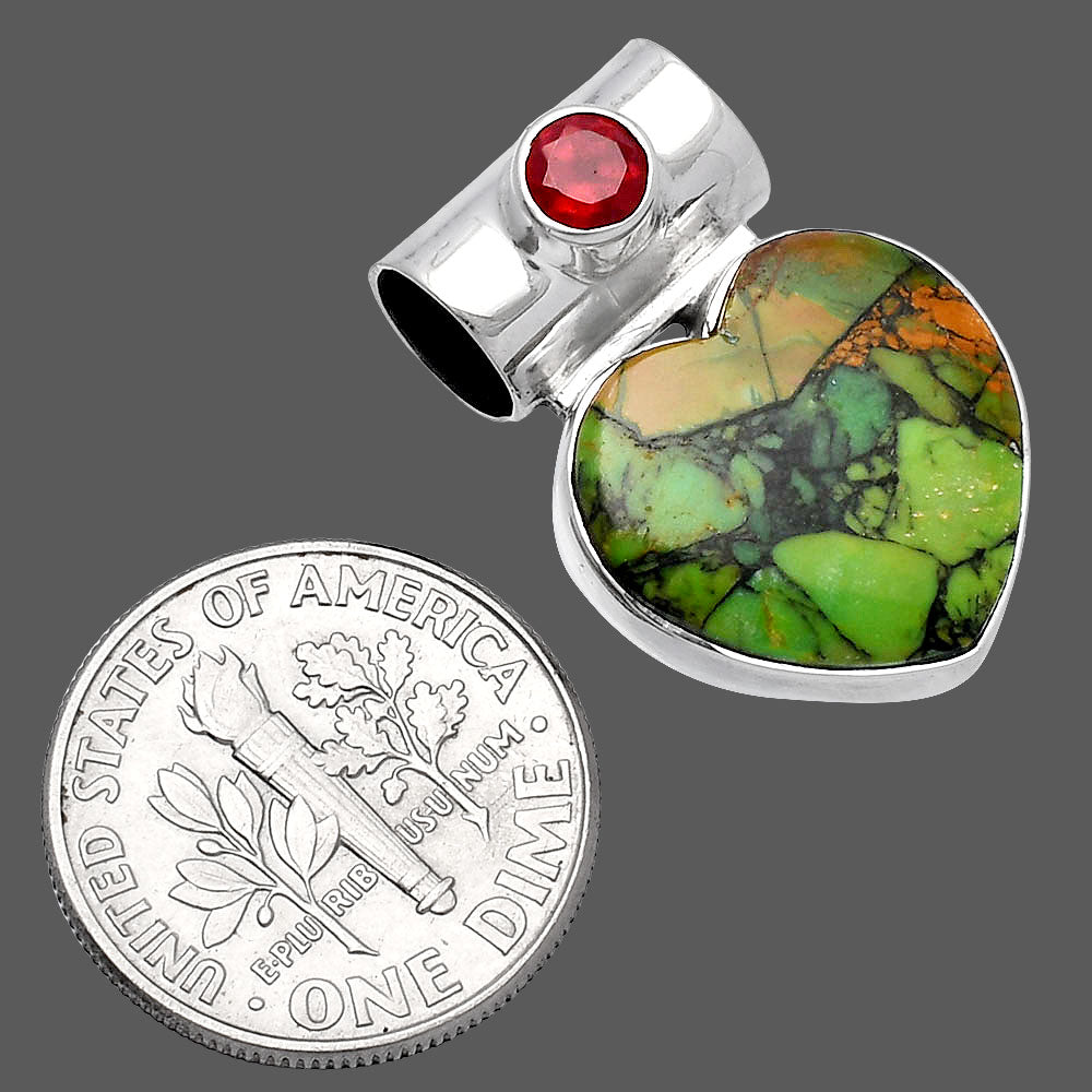 Heart Green Matrix Turquoise & Garnet Pendant P-1300 SDP145163