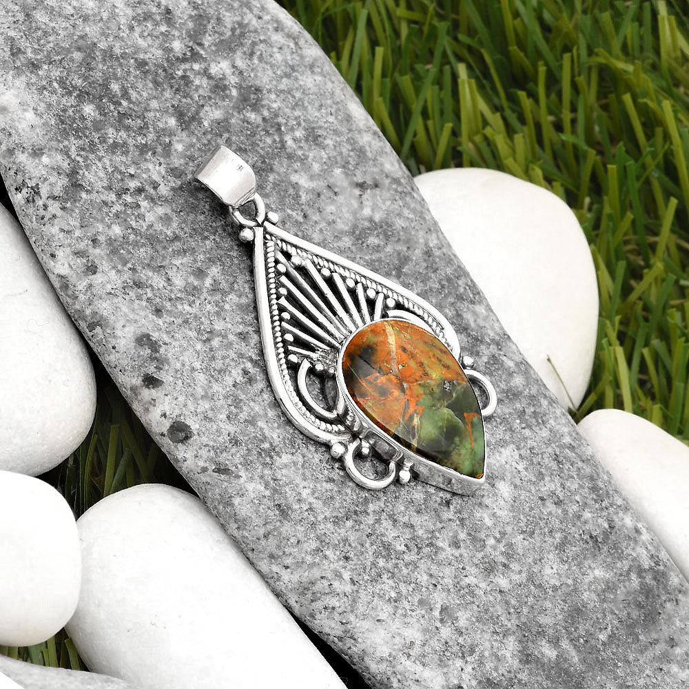 Natural Turkish Rainforest Chrysocolla Pendant P-1541 SDP107418